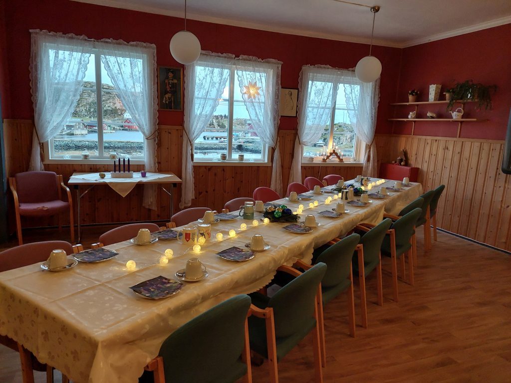 Med bilde av eit dekke adventsbord ynskjer vi alle ei riktig god jul og eit godt nytt år. Vi vil samtidig takke alle som har vore med å støtta grendalaget på øya med dugnad, kakebaking, laga til basarer, tilstelningar, vaska sanitærrom, rydda i kjelleren på grendahuset. fiksa og reparert taket på leikehuset som blåste ned i haust. Takk for materiale til ny vippe og til snekkar som fekk den på plass. Takk til alle som har gjeve gevinster til basarer og teke lodd, bakt kake m.m. Laga til loppemarked. Dugnad rundt og inne i Vikatun. Maling og reperasjon av Nordsjøløype. Det er sikkert meir som er gjordt og som ikkje er kommen med her.